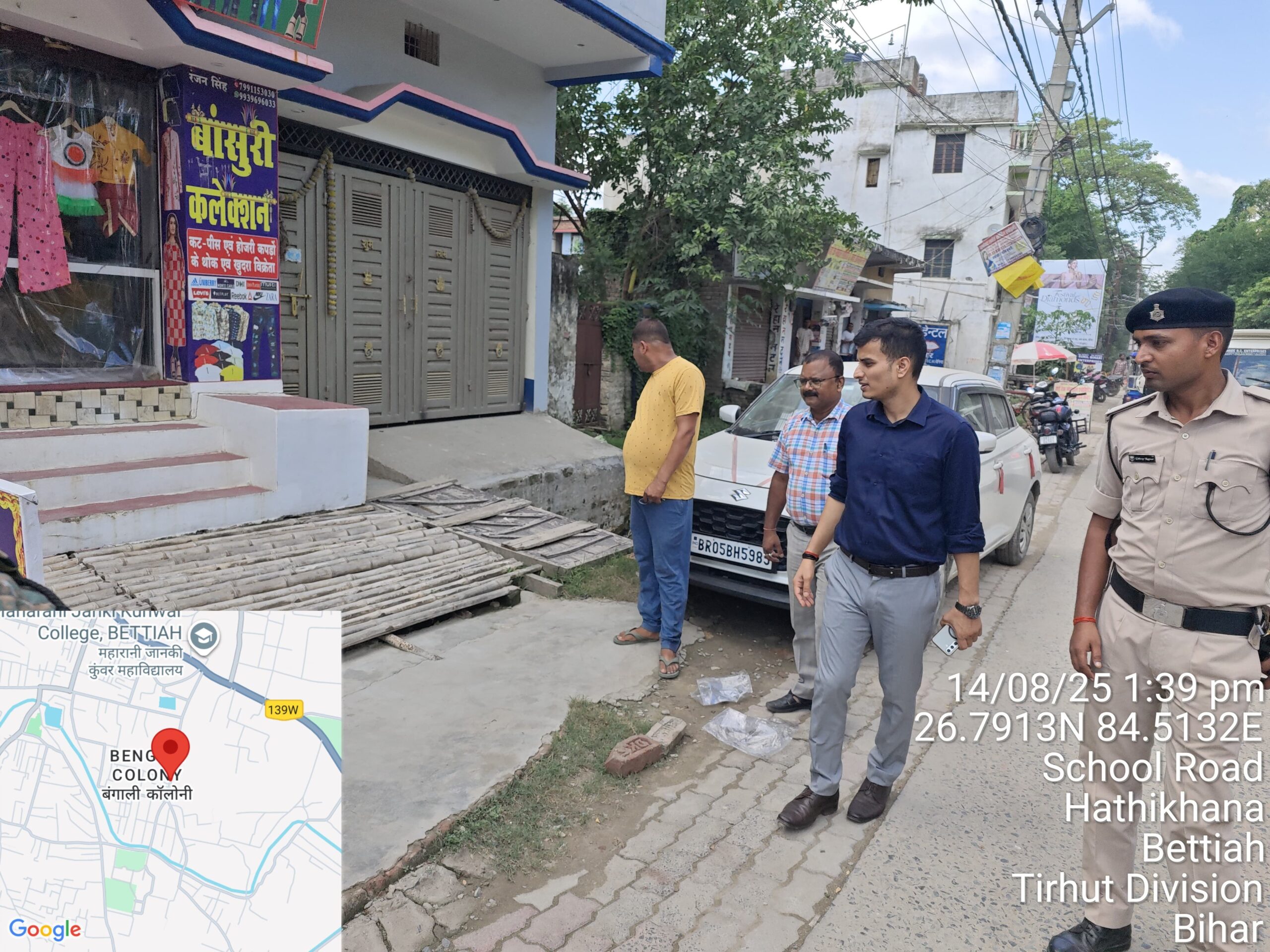 बेतिया : पश्चिम चम्पारण जिला मुख्यालय बेतिया स्थित नगर निगम के नगर आयुक्त लक्ष्मण तिवारी(भाप्रसे) ने 14 अगस्त 2025 को बंगाली कॉलोनी एवं आशा नगर क्षेत्र का अवलोकन किया। वहां के नगरवासियों की समस्या को नजदीक से देखा। तत्पश्चचात उन्होंने जनहित में बंगाली कॉलोनी में नाला ले पर स्लैब एवं आशा नगर में जल जमाव से निदान के लिए आवश्यक दिशा निर्देश दिया।