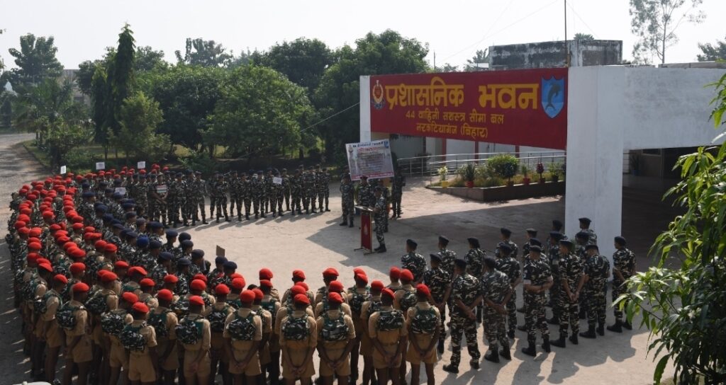 बेतिया: पश्चिम चम्पारण जिला अंतर्गत 44 वाहिनी सशस्त्र सीमा बल नरकटियागंज में द्वितीय कमान पदाधिकारी गोविन्द कुमार ठाकुर की उपस्थिति में राष्ट्रगीत वंदे मातरम की 150 वीं वर्षगांठ पर राष्ट्रगीत वन्देमातरम की प्रस्तुति की गई। गोविंद कुमार ठाकुर ने बताया कि कार्यक्रम वन्दे मातरम् का यह अनंत राष्ट्र-प्रेम हमें ‘राष्ट्र प्रथम’ की भावना और सामूहिक संकल्प के साथ नये भारत के निर्माण की प्रेरणा देते हुए सबको प्रेरित कर रहा है। वंदे मातरम की रचना की 150वीं वर्षगांठ को राष्ट्रव्यापी जन-उत्सव के रुप में मनाया जा रहा है, इसी गौरवशाली विरासत को जन-जन तक पहुंचाने का एक महत्वपूर्ण प्रयास है। उपर्युक्त कार्यक्रम के क्रम में 44 वाहिनी के उप कमांडेंट ज्ञानेंद्र कुमार, उप कमाडेंट शशिन शर्मा, सहायक कमांडेंट (चिकित्सा पदाधिकारी) कुंदन जसवाल एवं 44 वाहिनी के अधीनस्थ पदाधिकारी, बलकर्मी, बिहार पुलिस के नव प्रशिक्षुओं और स्कूली बच्चों सहित लगभग 250 की उपस्थिति रही। उपर्युक्त जानकारी सशस्त्र सीमा बल 44 वाहिनी की प्रचार शाखा नरकटियागंज ने मीडिया को दी।
