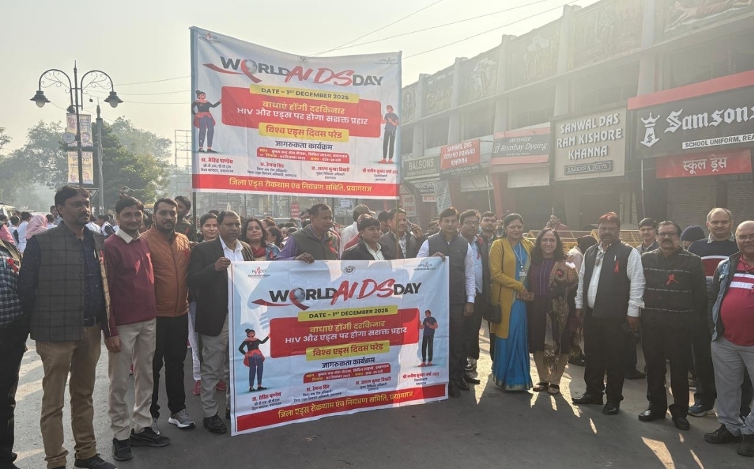 प्रयागराज(उत्तर प्रदेश): विश्व एड्स दिवस पर प्रयागराज में दिनांक 1 दिसंबर 2025 सोमवार को भव्य जागरुकता रैली निकाली गई। स्वास्थ्य और शिक्षा विभाग की पहल पर बड़ी संख्या में पैरामेडिकल स्टाफ व विभिन्न स्कूलों के छात्र छात्राओं ने बढ़ चढ़कर सहभागिता का निर्वहन किया। रैली का मुख्य उद्देश्य आम जनता को एचआईवी संक्रमण (एड्स) के प्रति जागरूक करना और इससे जुड़े सामाजिक कलंक को दूर करना है। सीएमओ डॉ एके तिवारी के आह्वान पर शहर के विभिन्न स्कूलों के बच्चों ने इस जागरण रुकता रैली में शामिल हुए। छात्र-छात्राएं हाथों में तख्तियां और बैनर लिए दिखे। उनकी तख्तियों पर एड्स से बचाव रोकथाम और संक्रमितों के साथ समान व्यवहार करने के संदेश लिखा पाया गया। मुख्य चिकित्सा पदाधिकारी प्रयागराज डॉ ए. के. तिवारी एवं जिला क्षय रोग पदाधिकारी/ जिला एड्स नियंत्रण पदाधिकारी प्रयागराज डॉ हेमंत सिंह ने हरी झंडी दिखाकर रैली को रवाना किया। जागरुकता रैली सुभाष चंद्र बोस चौराहे से शुरू होकर हनुमान मंदिर तक गई। हनुमान मंदिर से पुनः सुभाष चौराहे पर आकर समाप्त हुई। इस महत्वपूर्ण जन जागरूकता आयोजन के दौरान किसी भी प्रकार की अव्यवस्था से बचने के लिए सुरक्षा व्यवस्था का प्रशासन द्वारा पुख्ता इंतजाम किया गया। रैली के पूरे मार्ग पर सुरक्षा की दृष्टि से भारी पुलिस बल तैनात किया गया। पुलिस कर्मियों ने रैली को सुचारू रूप से संचालित करने में सहायता किया। इस अवसर पर मुख्य चिकित्सा पदाधिकारी डॉ एके तिवारी ने कार्यक्रम को संबोधित करते हुए कहा कि एचआईवी एड्स के विरुद्ध जंग में में जागरूकता ही सबसे बड़ा हथियार है। उन्होंने सभी नागरिकों से एचआईवी एड्स के बारे में सही जानकारी रखने और संक्रमित लोगों के साथ किसी भी प्रकार का कोई भेदभाव न करने की अपील की।इस अवसर पर डॉ रोहित पांडेय, डॉ संजय कश्यप, आलोक वर्मा, नागेंद्र मनी मिश्रा, डॉ विकाश चंद्र मिश्रा, राकेश लाल, अनिल सिंह धीरज त्रिपाठी, राज कुमार शुक्ला, कार्तिकेय त्रिपाठी, दीपू त्रिपाठी, संदीप दास, हर्स तनुजा, बिंदु शुक्ला, शकुंतला शर्मा, रिचा तिवारी, जितेंद्र दुबे, देवकी नन्दन, सीमा जायसवाल, ज्योति जायसवाल, सुधा,नीलम शुक्ला, अर्चना शुक्ला,दिनेश, प्रवीण कुमार, विशाल छारि, राजेश, धीरज अग्रवाल, गुड़िया, आशीष, मोनिका, आयुष, जमुना यादव, रवि शंकर, सुशील कुमार जिले के समस्त एड्स नियंत्रण पदाधिकारी एवं कर्मचारियों के साथ टी आई एन जी ओ के कर्मचारी उपस्थित रहे।