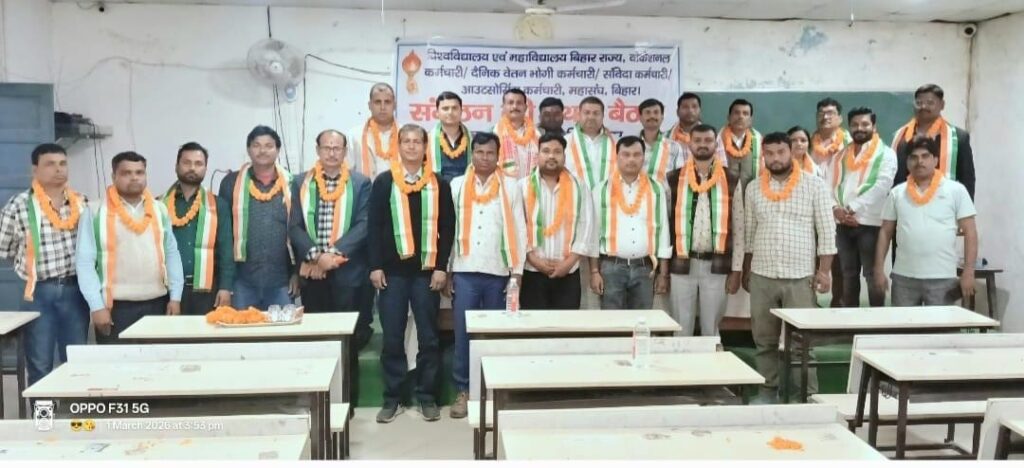 पटना : बिहार प्रदेश के विश्वविद्यालय एवं महाविद्यालय में कार्यरत वोकेशनल कर्मचारी/दैनिक वेतन भोगी कर्मचारी/संविदा कर्मचारी/आउटसोर्सिंग कर्मचारी संघ ने एक नया संगठन का निर्माण किया है। नया संगठन ‘विश्वविद्यालय एवं महाविद्यालय बिहार राज्य, वोकेशनल/दैनिक वेतन भोगी/संविदा/आउटसोर्सिंग, कर्मचारी महासंघ बिहार’ बनाया गया है। उपर्युक्त संघ का चुनाव सलाहकार समिति/चुनाव पर्यवेक्षक डॉ. अमित कुमार के साथ अन्य अतिथिगण के समक्ष सम्पन्न हुआ। जिसमे बिहार प्रदेश एवं प्रक्षेत्रीय स्तर पर संगठन के पदाधिकारिगण का चुनाव कराया गया। बिहार प्रदेश में निर्वाचित पदाधिकारियों में रश्मि वर्मा संरक्षक, निवर्तमान विधायक नरकटियागंज, रवि शंकर-प्रदेश अध्यक्ष, उज्जवल कुमार – प्रदेश सचिव, रोहित कुमार पटेल – प्रदेश उपाध्यक्ष, रजनीश कुमार – प्रदेश उपाध्यक्ष, राजा बाबू – प्रदेश कोषाध्यक्ष, मीना कुमारी प्रदेश संयुक्त सचिव, सावन कुमार – प्रदेश संयुक्त सचिव निर्वाचित हुए।